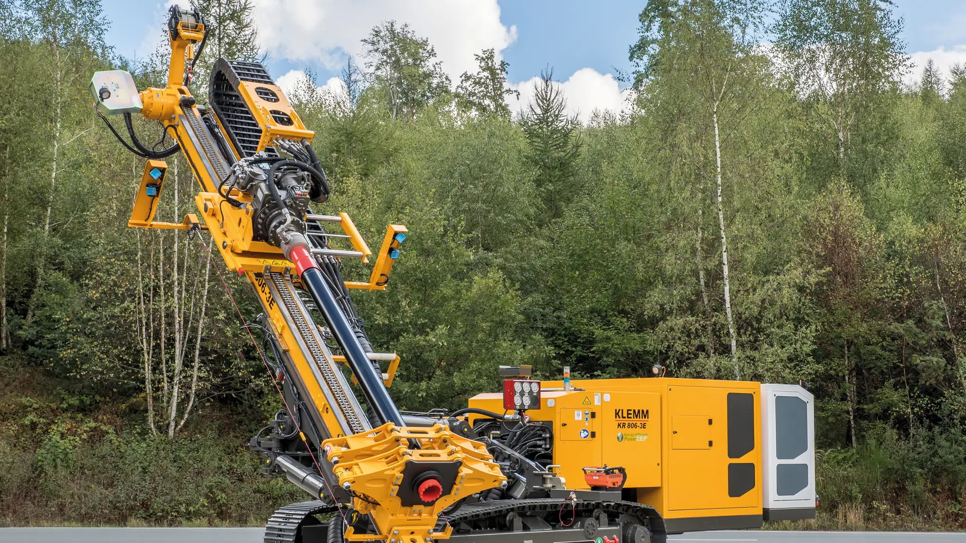 Heute sind es elektrische Antriebskonzepte und smarte Maschinenfunktionen, die den Weg in die Zukunft weisen. Die batterieelektrische KR 806-3E ist Klemms Beitrag zur Dekarbonisierung. In diesem Gerät steckt die bewährte Technik der KR 806-3GS – dieselbe Kinematik und die Adaptierung derselben leistungsstarken Doppelkopfbohrsysteme und Hydraulikhämmer, allerdings als elektrohydraulische, emissionsfreie Variante. Im Vergleich zur dieselhydraulischen Variante gibt es keine Einschränkungen bei der Leistung und Anwendung. Dank ausgereifter Technik und robuster Bauweise werden Klemm-Systeme unter fast allen Bedingungen weltweit eingesetzt, z. B. bei Gründungs- und Sicherungsarbeiten, bei der Anlage von Verkehrsstraßen über und unter Tage, bei Staudammabdichtungen und bei der Erschließung regenerativer Energien.