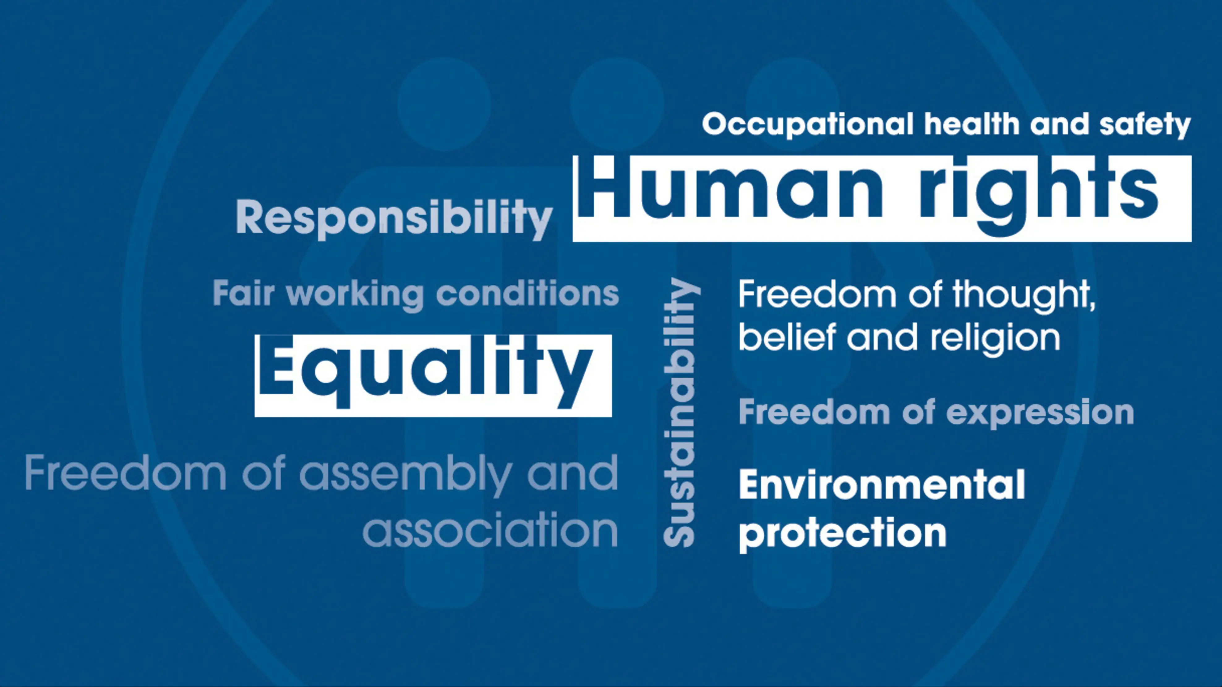 Con nuestros productos y servicios estamos presentes en muchos mercados del mundo. Por ello, es importante para nosotros que nuestros clientes, socios, subcontratistas, proveedores, empleados, inversores y acreedores, accionistas y el público en general nos vean como una empresa con una imagen positiva y uniforme basada en valores compartidos.